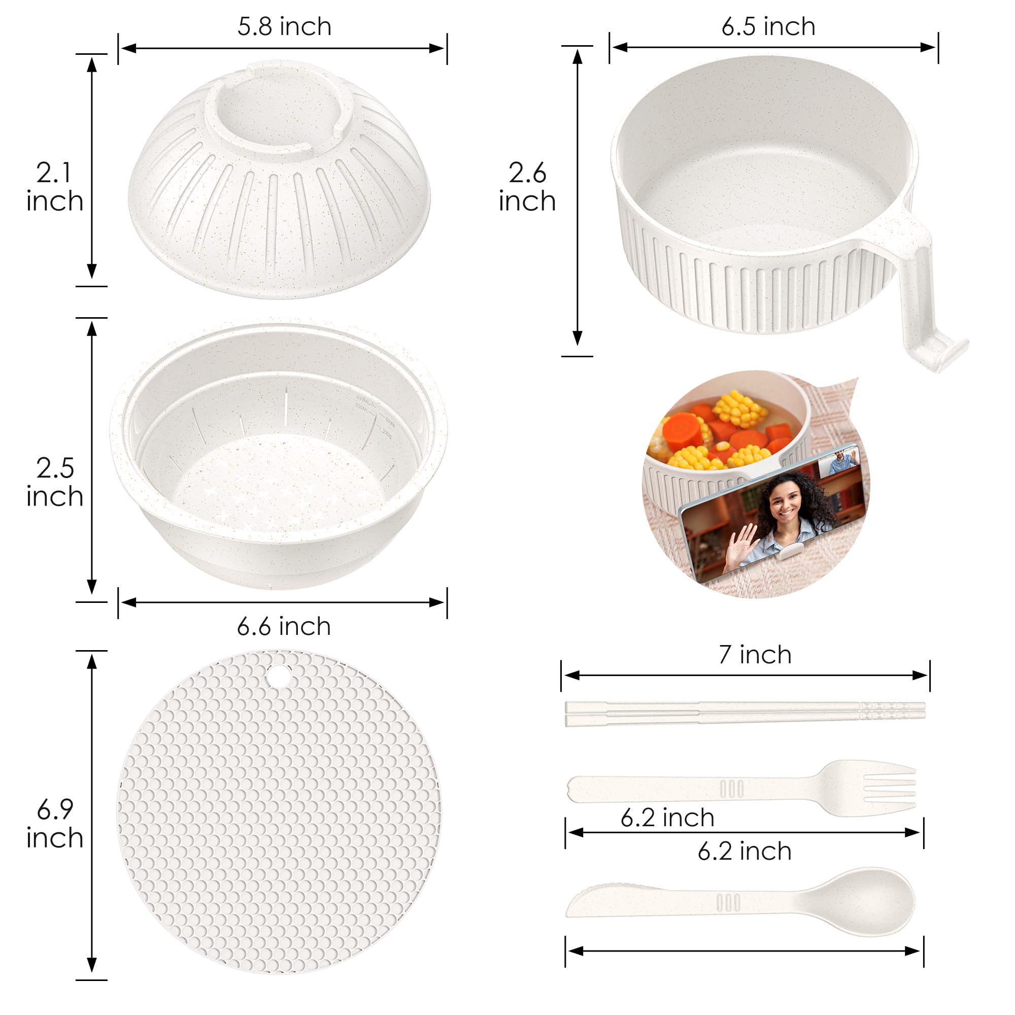 Ramen Bowl with Handles, 2 Set Wheat Fiber Ramen Cooker Microwave with Strainer, 34oz Noodle Bowl with Pot Mat Spoon Chopsticks Fork for Home, School, Office, Dorm, Picnic or Gift
