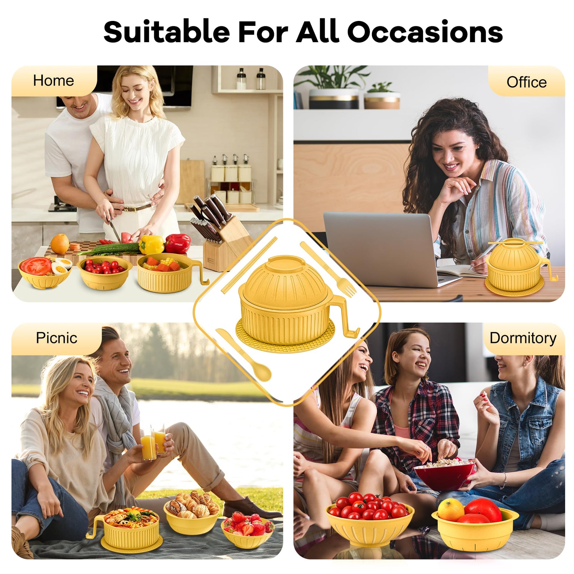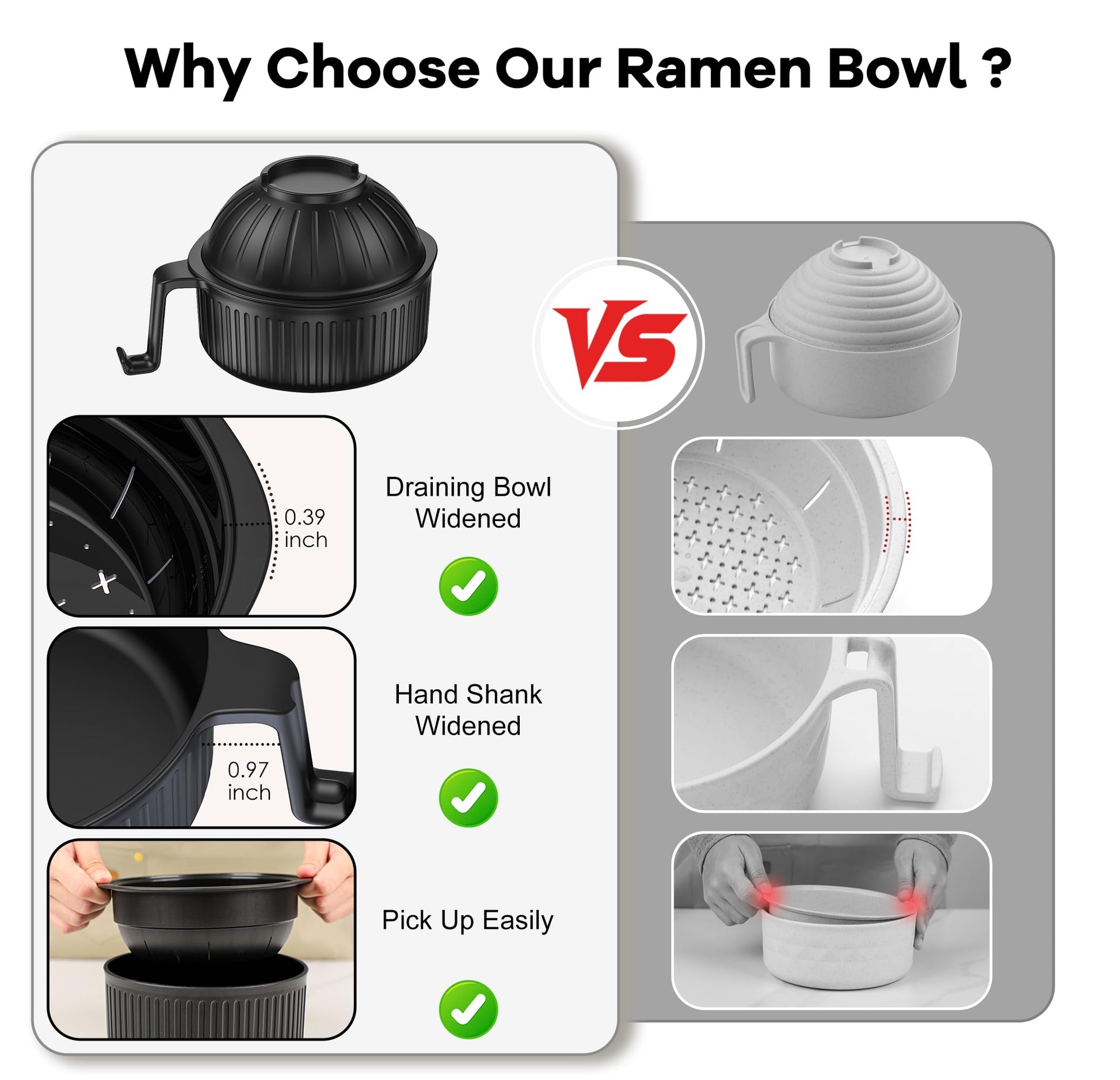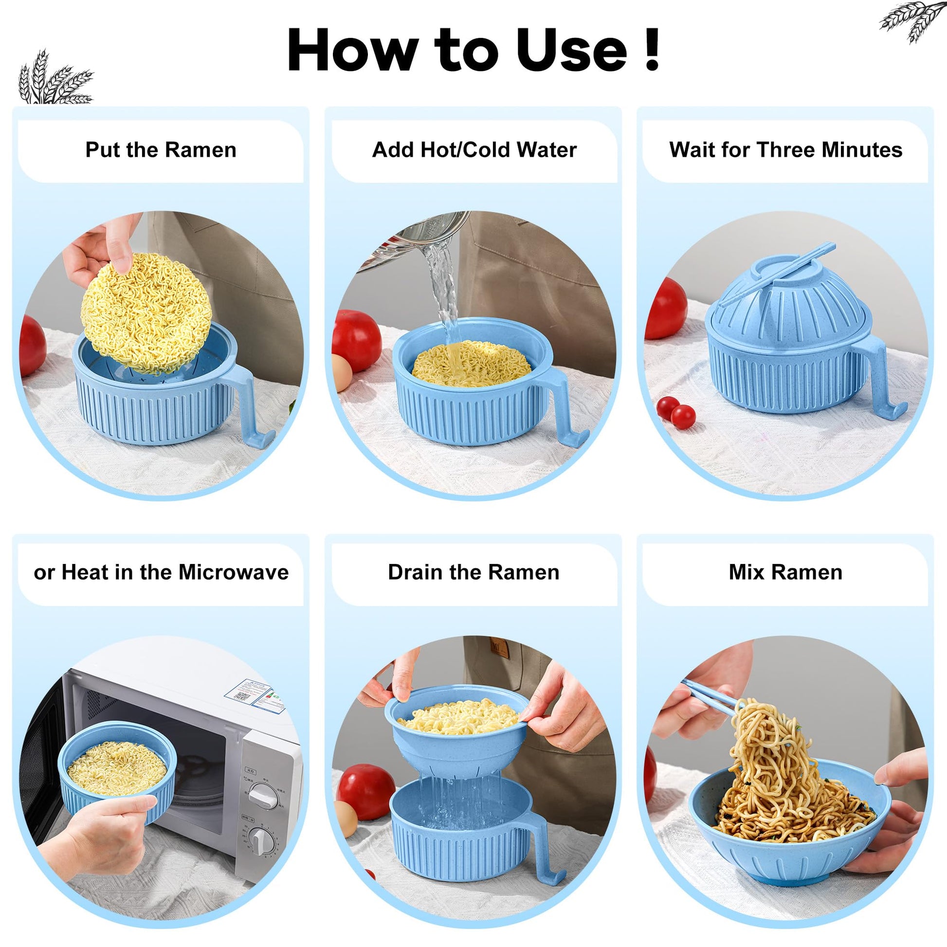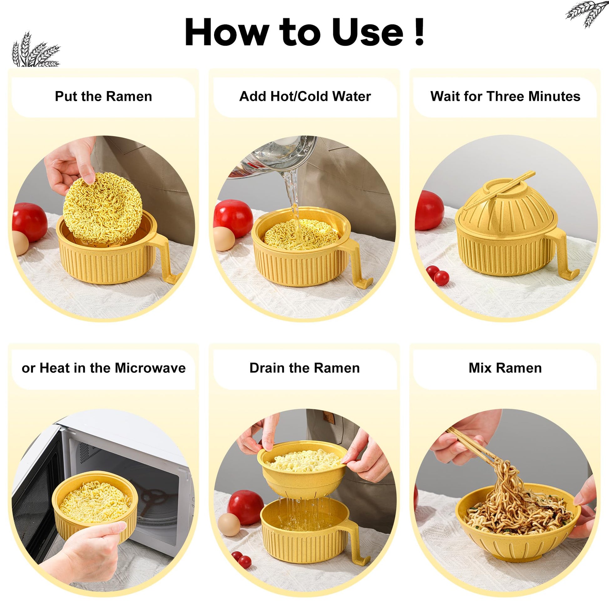 - 【Elaborate Design】Beiyunee ramen noodle bowl comes with side handles for easy and safe removal from the microwave. Our draining bowl is widened on both sides for easy extraction. Our multi-purpose mat can be used as a pot mat or to extract microwave-heated items. The insulation is good. Side handle of the microwave ramen cooker allows you to lean your phone against it. It's so much fun to eat noodles and watch TV.