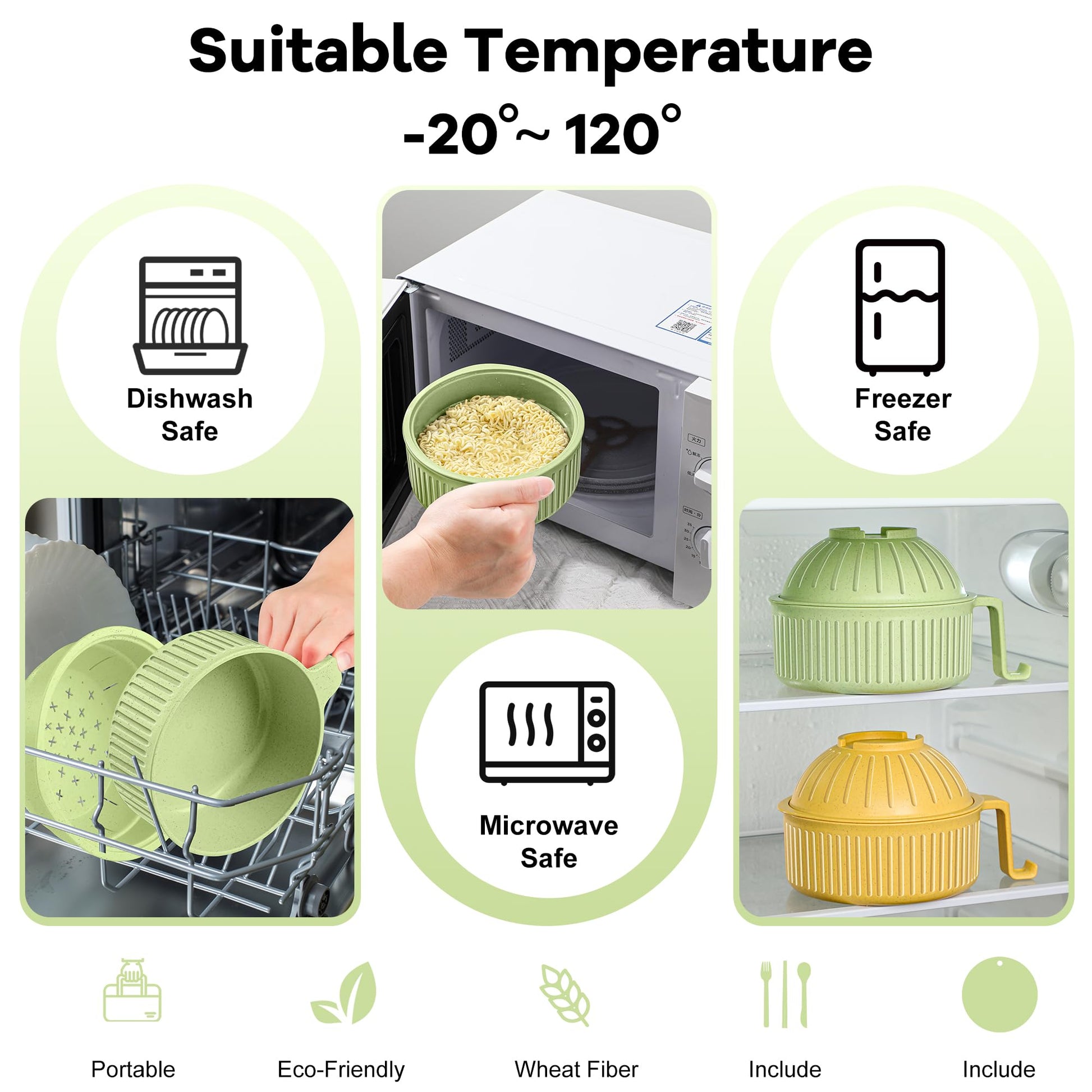 - 【High Quality Material】Our ramen bowl sets are made of wheat straw (natural organic composite) and are safe for both adults and children to use. With a large capacity of 34 ounces, you can add as many other ingredients as you like to this noodle pot to make every meal a memorable culinary experience. Microwave safe and dishwasher safe.