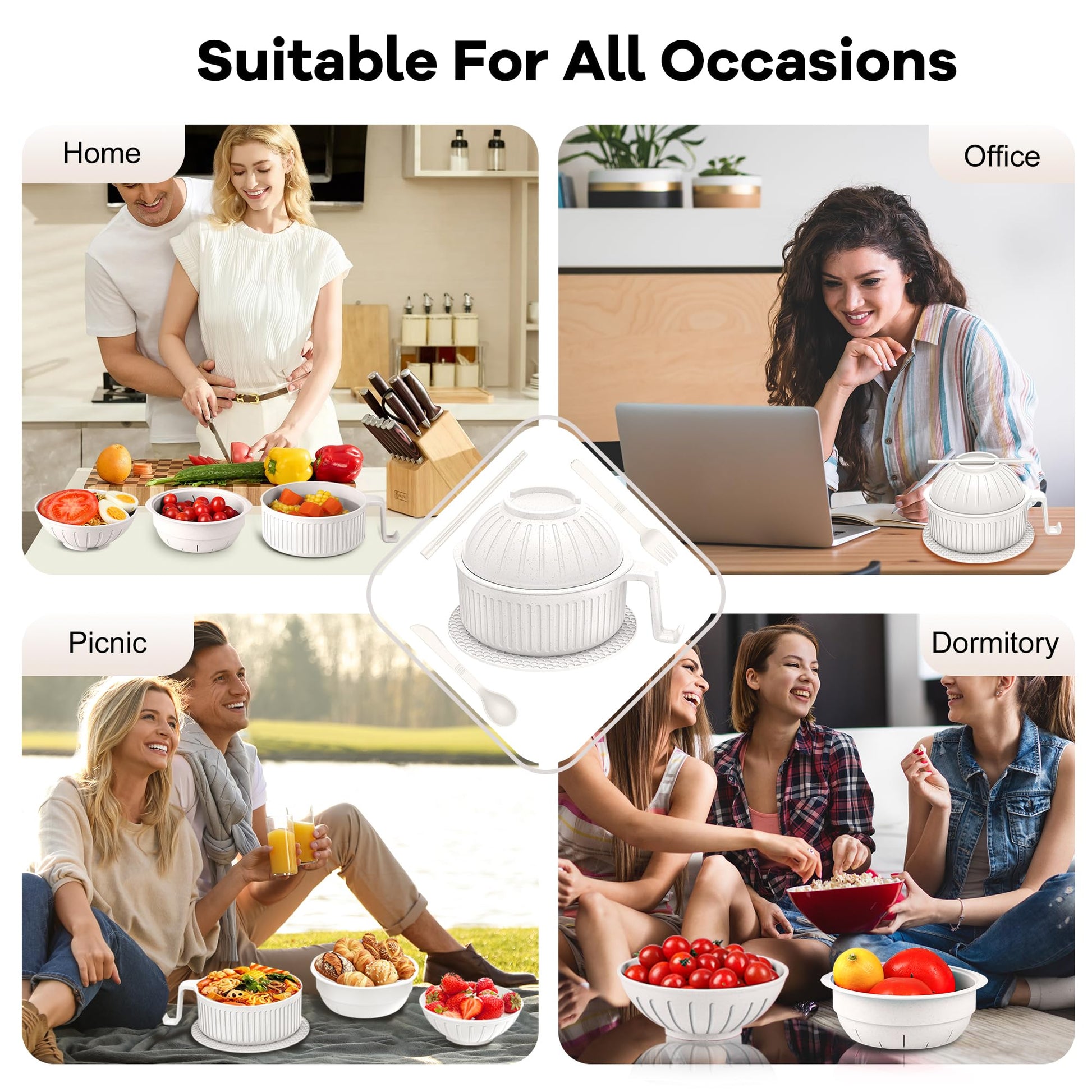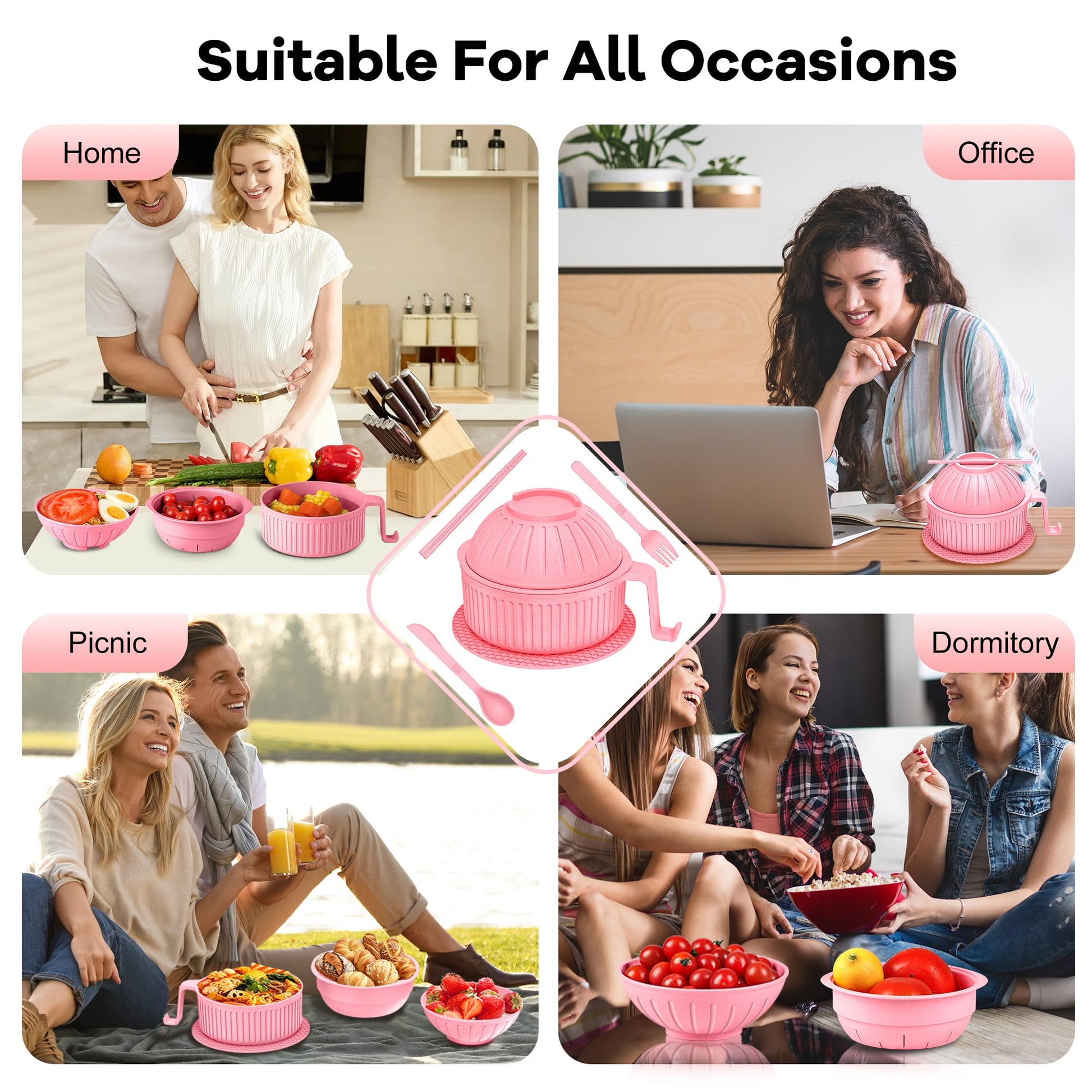 - 【Multi Purpose】Our microwave ramen bowl set consists of three parts, a large soup bowl at the bottom (34ounces), a drainage bowl in the middle, and a small bowl at the top (18 ounces). The large bowl on the bottom and the small bowl on the top can be used for everyday use, or placed directly in the microwave for ramen, pasta, cheese, soup, cereal and oatmeal, and anything else that can be safely microwaved.(Tips: Microwave oven setting temperature can not exceed 120°)